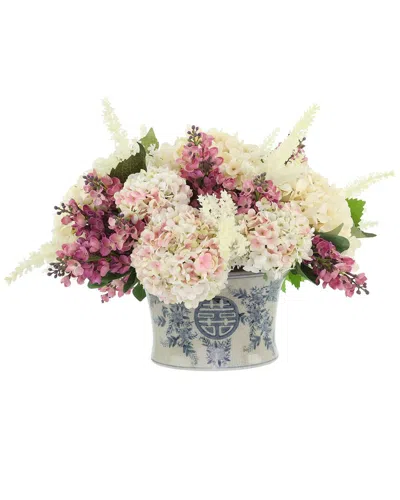 About The Brand: Fine Floral Arrangements For The Perfect Finishing Touch. Color/Finish: Pink; Cream; Blue Design Details: Offer A Spring-Time Feel To Your Space With This Charming Floral Arrangement. Featuring Vibrant Lilacs, Lush Cream Hydrangeas, Soft Pink Viburnum And Pampas Perfectly Arranged In A Classic Blue And White Decorative Pot. Its Classic Design Will Complement Any Style, Making It The Perfect Addition To Your Existing Decor. With No Maintenance Required Aside From An Occasional Dusting, You Can Enjoy Your Flowers Season After Season, Without The Worry Or Hassle Of Upkeep. Measurements: 14In X 15In X 11In Polysilk; Ceramic Wipe Clean With A Dry Cloth Made In The Usa