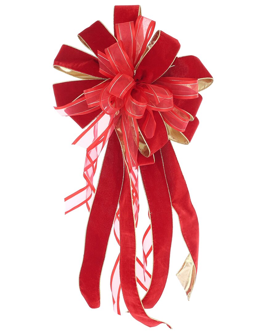 About The Brand: Fine Floral Arrangements For The Perfect Finishing Touch. Color/Finish: Red Design Details: Capture The Magic Of The Holiday Season With The Exquisite Handmade Christmas Bow. Each Bow Is Crafted With Meticulous Attention To Detail, Using Premium Materials To Ensure Both Durability And Elegance. The Rich Red Velvet Ribbon Is Beautifully Accented With A Gorgeous Gold Backing And Added Sheer Ribbon, Making It The Perfect Addition To Your Holiday Decor. Whether Adorning Your Christmas Tree, Enhancing A Wreath, Or Sprucing Up A Gift, This Bow Adds A Touch Of Festive Charm And Sophistication. Handcrafted In The Usa; Classic, Traditional, Modern, Glam; Weddings, Showers, Parties, Events, Banquets, Birthdays, Special Occasions; Christmas, New Year's, Hanukkah Measurements: 14.5In X 8In X 33In Fabric Wipe Clean With Dry Cloth Made In The Usa