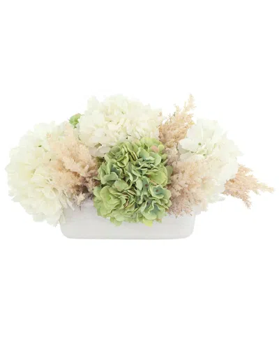 About The Brand: Fine Floral Arrangements For The Perfect Finishing Touch. Color/Finish: Cream; Green Design Details: Introducing The Spring Faux Floral Centerpiece, The Perfect Addition To Your Seasonal Décor. Featuring Soft Cream Hydrangeas, Beige Pampas And Green Hydrangeas Arranged In A White Ceramic Planter, This Gorgeous Arrangement Will Complement Any Style Décor. With No Maintenance Required Aside From An Occasional Dusting, You Can Enjoy Your Centerpiece All Year Long Without The Worry Or Hassle Of Upkeep. Measurements: 14In X 19In X 10In Polysilk; Ceramic Wipe Clean With A Dry Cloth Made In The Usa