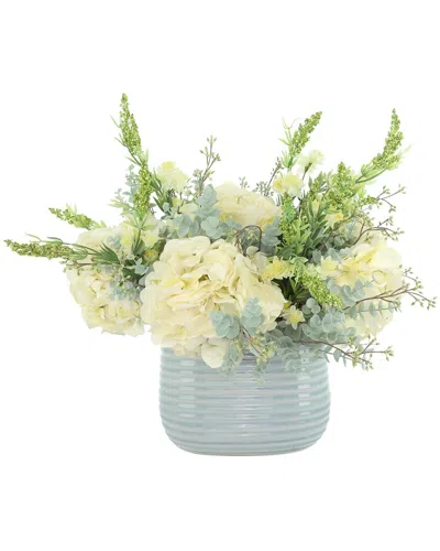 About The Brand: Fine Floral Arrangements For The Perfect Finishing Touch. Color/Finish: Blue; Cream; Green Design Details: Offer Your Space A Soft Pop Of Color With This Stunning Faux Floral Arrangement. Featuring Soft Cream Hydrangeas And Eucalyptus Accented With Charming Wild Heather, All Effortlessly Arranged In A Gorgeous Decorative Ceramic Vase. With No Maintenance Required Aside From An Occasional Dusting, You Can Simply Place Your Arrangement And Enjoy Its Beauty Season After Season, Without The Worry Or Hassle Of Upkeep. Measurements: 17In X 19In X 15In Polysilk; Ceramic Wipe Clean With A Dry Cloth Made In The Usa