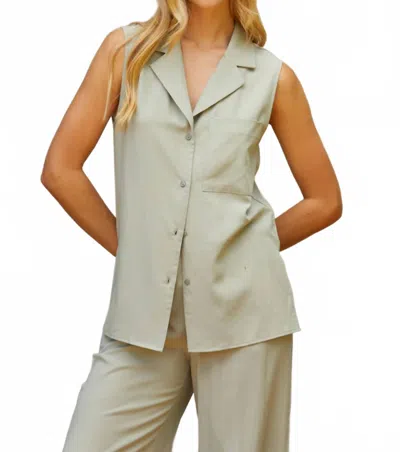 CRESCENT Lisa Sleeveless Button Up Top In Eucalyptus In Green