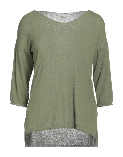 knitted, lightweight knit, no appliqués, solid color, v-neck, 3/4 length sleeves, no pockets , Color: Military green , Size: L