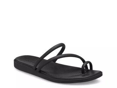 These Crocs Women's Miami Toe Loop Sandals make minimalist style look marvelous. Crafted with a synthetic Tpu upper, this strappy slip-on silhouette sports a square-toe shape and is equipped with drop-in Croslite footbeds and outsoles with a toe loop detail for a sophisticated, spa-ready aesthetic.