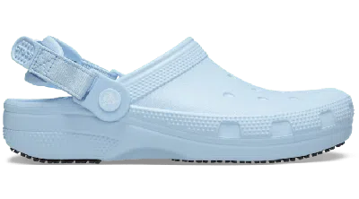 When you’re on your feet working for long hours, the Classic Work Clog gives you the comfort and features that work as hard as you do. Designed with food service, hospitality and healthcare workers in mind, these clogs feature Crocs Lock™ slip-resistant tread, an adjustable backstrap, enclosed toe design, and a waterproof upper. These premium features combine with a light and supportive design to help you get through even the longest shifts. Classic Work Clog Details: Lightweight, yet durable all-day comfort Pivotable, adjustable backstrap for a customized fit Crocs Lock™ slip-resistant tread Fully molded and easy to clean with soap and water Enclosed toe design and waterproof upper help protect foot from spills Iconic Crocs Comfort™: Lightweight. Flexible. 360-degree comfort. ASTM F2913-24 tested, ASTM F3445-24 certified, CE certified Meets or exceeds EN ISO 20347:2012, OB, SRC