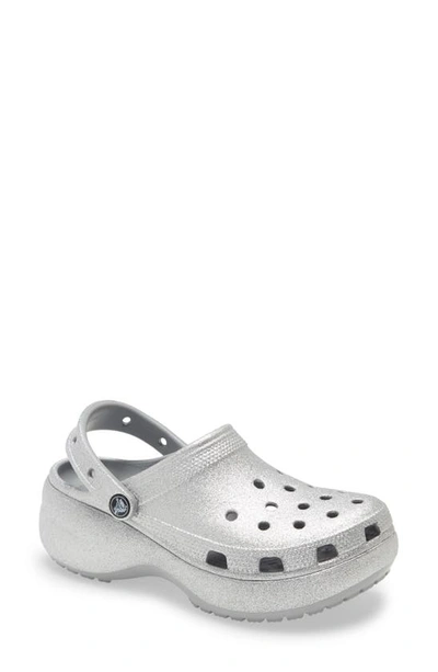 CROCSTM Classic Glitter Platform Clog In Silver