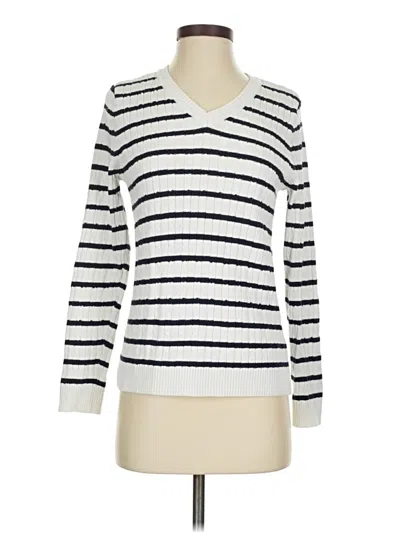 Croft & Barrow Pullover Sweater, Size: Small. Item Details: White, Stripes Pattern, V-Neck, Long Sleeve, Women's Tops, Cotton/Polyester