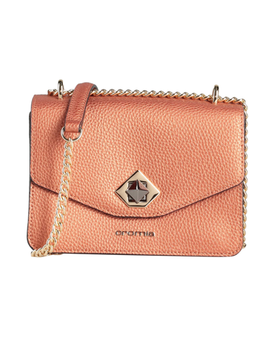 CROMIA Handbags. small, leather, textured leather, brand logo, solid color, fully lined, framed closure, internal pocket, external pocket, bag handle, daytime, contains non-textile parts of animal origin, laminated effect, flap bag. 100% Bovine leather