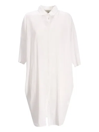 white button fastening short sleeves pleated texture mid length