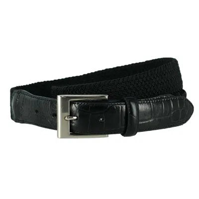 Men's Braided Elastic Stretch Belt With Croc Print End Tabs In Black