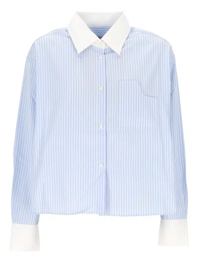 CUANTICO Striped Collared Top In Blue