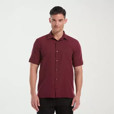 CUBAVERA Argyle Embroidery Panel Mens Short Sleeve Regular Fit Button-down Shirt In Red