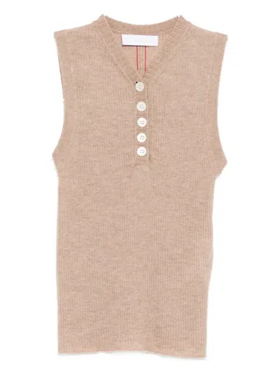 Cashmere Buttoned Vest In Brown