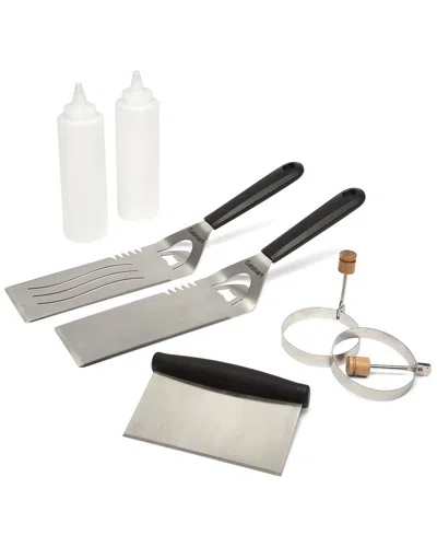 Material: Steel And Plastic Design Details: Elongated, Multi-Functional Spatulas With Bottle Openers; Squirt Bottles For Water, Oil, Or Sauces; Egg Making Rings; Griddle Scraper For Easy Cleanup Measures 13In X 13In X 21 Imported Contents Of Set: Two Spatulas Two Squirt Bottles Two Egg Making Rings One Griddle Scraper