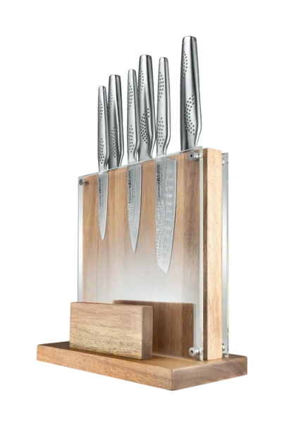 The Cuisine::pro iD3 Samurai Sato 7-Piece Knife Block Set, with its exquisite craftsmanship and cutting-edge technology, delivers high-performance and a modern touch to your kitchen.