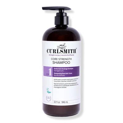 CORE STRENGTH SHAMPOO XL 32OZ. Benefits: Very gentle cleanser that gets rid of dirt and product build-up without stripping the hair of moisture. Enriched with proteins at low dosage, it can be used frequently without the risk of protein overload. Balancing protein-rich and moisturizing products in your routine is key to strengthen and protect the hair against damage. The more damaged and porous your hair is, the more protein-rich products you should use. Safe for color-treated hair. Suitable for frequent washes. Vegan, cruelty free, clean ingredients and curly girl friendly (no sulfates, silicones or drying alcohols). Designed for all curls and texture types, this product is also suitable for straight hair. Key Ingredients: Gentle cleansers that don't strip hair's natural oils. Powerful patented active that targets and fortifies hair bonds. Hemp Seed & Rice Protein complex, completely plant-based alternative to animal keratin that helps the hair look stronger and more elastic. Blend of nutrient-rich superfoods (Prickly Pear, Kale, Guava, Shiitake Mushroom, Blackcurrant and Pumpkin Seeds). :