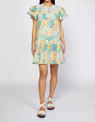 CURRENT AIR Patchwork Flutter Sleeve Dress In Green/multi