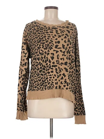 Current/Elliott Pullover Sweater, Size: Medium. Item Details: Tan, Animal Print Pattern, Scoop Neck, Long Sleeve, Women's Tops, 100% Cotton