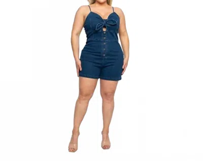 CURVE MARKET Button Down Denim Romper In Dark Wash In Blue