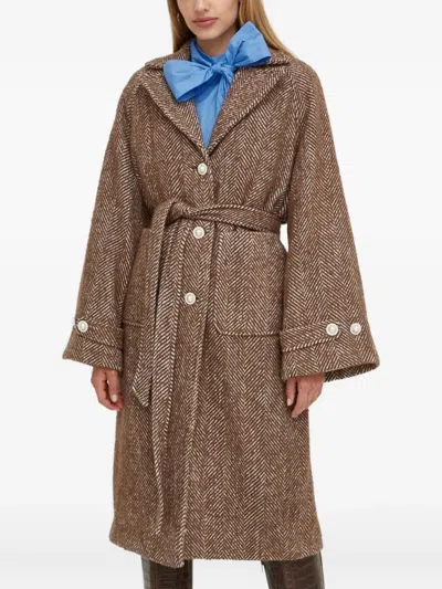 CUSTOMMADE Herringbone Buttoned Single-breasted Coat In Brown