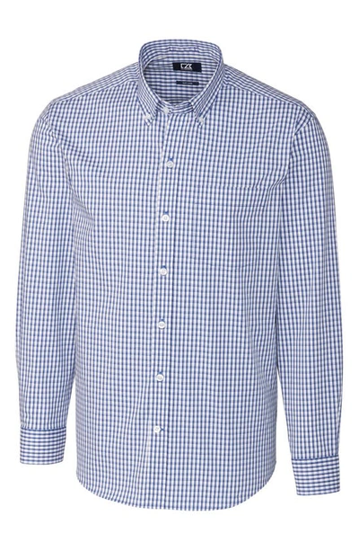 CUTTER & BUCK Easy Care Stretch Gingham Mens Big And Tall Long Sleeve Dress Shirt In Blue