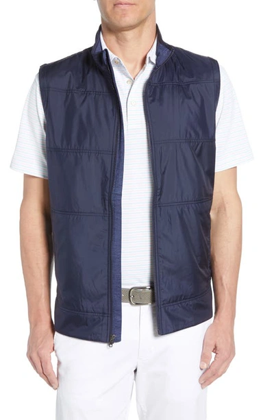 A lightweight quilted vest with ventilating knit back retains warmth while preventing you from overheating, perfect for chilly golf rounds or mountain hikes. Front zip closure Stand collar Front pockets Banded hem Moisture-wicking 89% polyester, 11% spandex Machine wash, tumble dry Imported