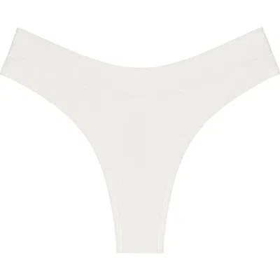 A minimal coverage, mid-rise silhouette. The Thong is cut with the same flattering back V shape as our Bikini. Minimal back-end coverage offers a seamless appearance under clothing clean lining keeps moisture and keeps you comfortable Mid-rise cut can be styled to sit high or low across the hips Luxurious construction means a no-dent, high-stretch waistband that's distraction-free