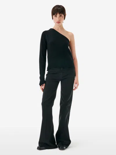 Maglione dal design monospalla con manica lunga. Il modello, proposto in un'intensa tonalita black, e realizzato in misto lana e alpaca dalla mano morbida ed e caratterizzato da fondo manica e fondo capo irregolare per un effetto distressed. Il capo e rifinito da una raffinata lavorazione a costine sui bordi esterni e dall'iconico logo Cycle placcato sul retro.
