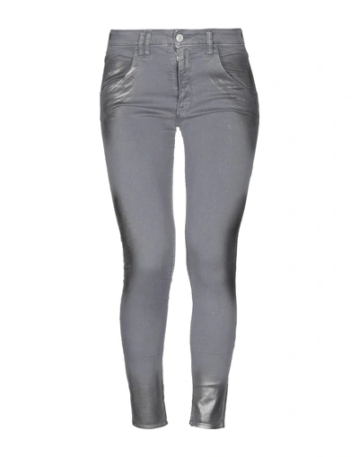 plain weave, metal applications, solid color, low waisted, tapered leg, slim-leg pants, zipper closure, button closing, side slit hemline, multipockets, stretch , Color: Grey , Size: 31