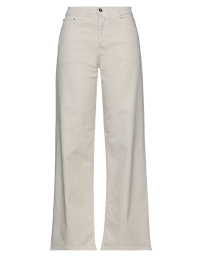 denim, brand logo, solid color, colored wash, high waisted, flared cut, regular fit, button closing, multipockets, stretch , Color: Ivory , Size: 32