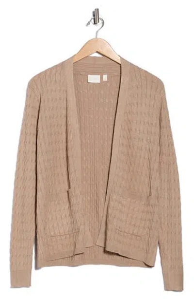 Chic and cozy, this open-front cable-knit cardigan is a layering dream. Open front Long sleeves with ribbed cuffs Front patch pockets 80% rayon, 20% nylon Hand wash, dry flat Imported