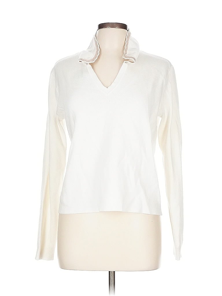 Cyrus Pullover Sweater, Size: Large. Item Details: Ivory, Collared Neckline, Long Sleeve, Women's Tops, Rayon/Nylon