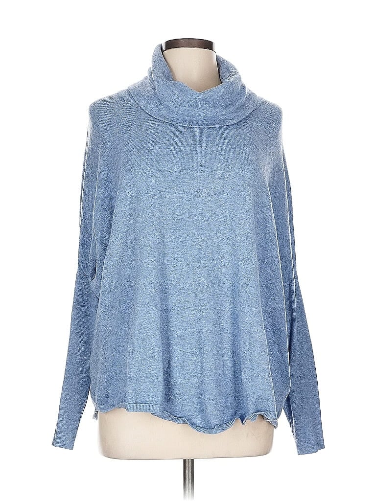 Cyrus Turtleneck Sweater, Size: Large. Item Details: Blue, Cowl Neck, Long Sleeve, Women's Tops, Rayon/Polyester/Nylon