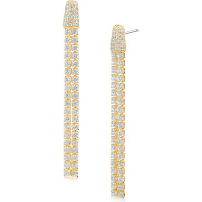 CZ BY KENNETH JAY LANE Cubic Zirconia Double Strand Linear Drop Earrings In Gold