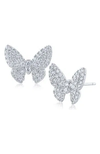 Pavé Cubic Zirconia Butterfly Stud Earrings In Metallic
