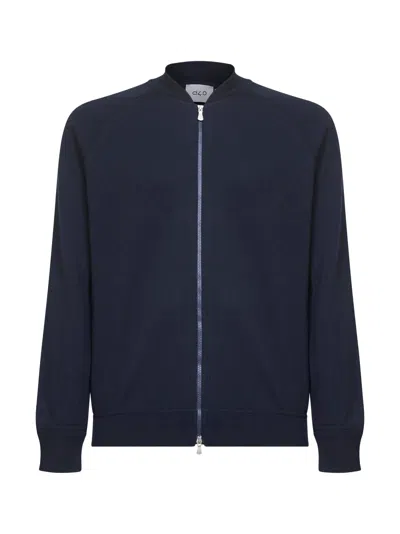 D 4.0 Blue Virgin Wool Knit Bomber-style Cardigan