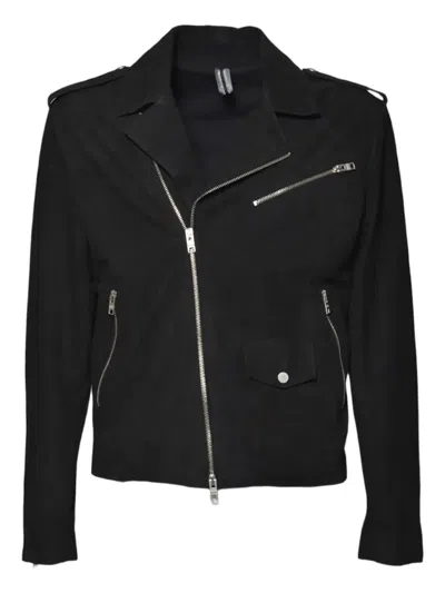 D FOUR Asymmetrical Front-zipper Leather Jacket With Multiple Pockets In Black