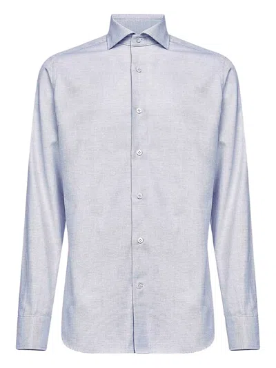 light blue jacquard pattern buttoned cuffs front button placket spread collar back yoke
