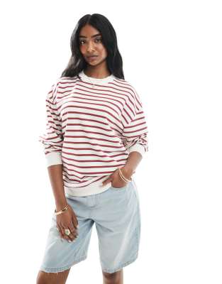 Hoodies & Sweatshirts by Daisy Street Stripe design Crew neck Drop shoulders Ribbed trim Boxy fit