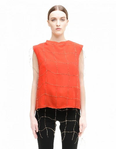 Tops, Damir Doma, Red Fishnet Top, Material: 100% cupro, France