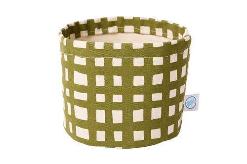Grid Round Bin/canvas Planter In Green