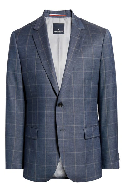 DANIEL HECHTER Windowpane Check Wool Blazer In Blue
