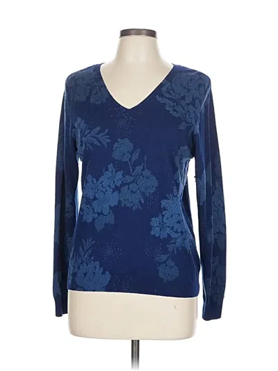 Daniel Rainn Pullover Sweater, Size: Large. Item Details: Blue, Floral Pattern, V Neck, Long Sleeve, Print, Women's Tops