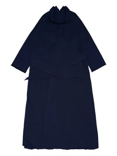 navy blue raw hem shawl lapels wrap style belt long sleeves