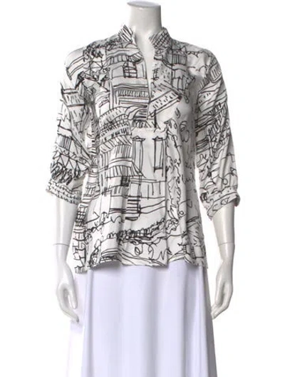 Pre-owned Silk Printed Blouse In White
