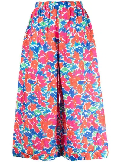 white/multicolour cotton all-over floral print wide leg cropped elasticated waistband two side inset pockets. This piece fits true to size. We recommend you get your regular sizeModel is 1,75m / 5ft 8in wearing size UNI.