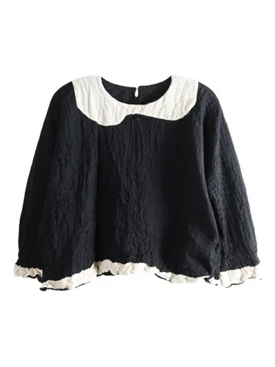 DANIELA GREGIS Wool Ruffled Blouse In Black