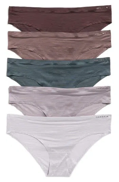 DANSKIN 5-pack Bonded Shadow Stripe Bikinis In Multi