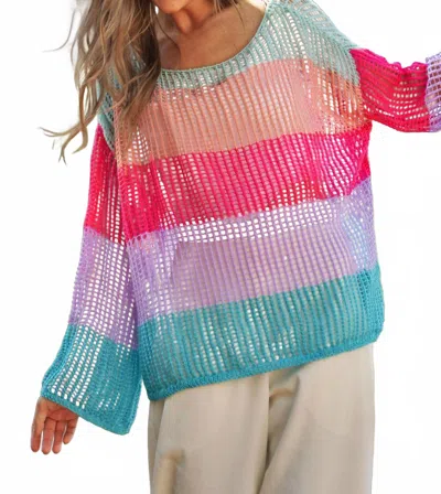 DAVI & DANI Crochet Color Block Striped Pullover In Multi