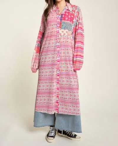 DAVI & DANI Mesh Print Mix Matched Button Front Cover Up In Cream Pink Multi