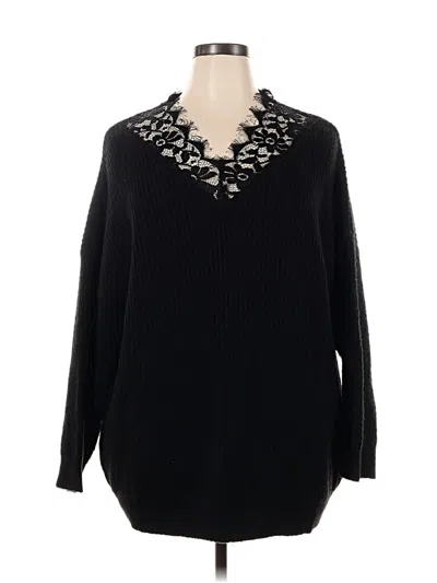 Davi & Dani Pullover Sweater, Size: 1X. Item Details: Black, Collared Neckline, Long Sleeve, Lace Up, Women's Tops